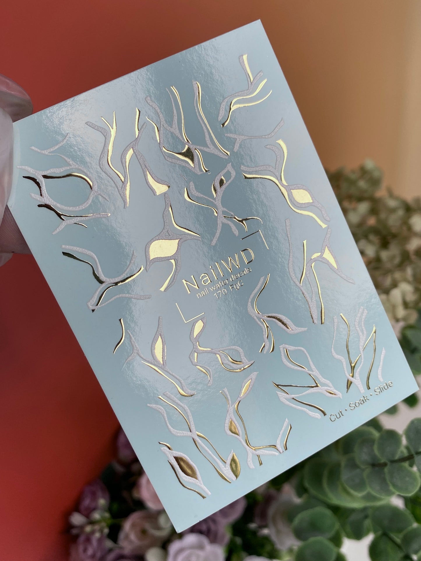 Nálepka na nehty 170 Nail WD | Vodní nálepky na nehty abstraktní větve a zlaté akcenty | Vodní nálepky na nehty minimalistický design čárového umění