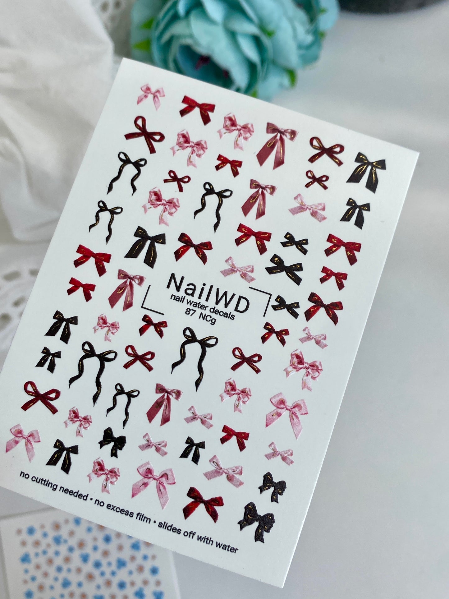 Nálepka na nehty 87 NailWD | Vodní nálepky na nehty černé, červené a růžové mašle | Elegantní dívčí design