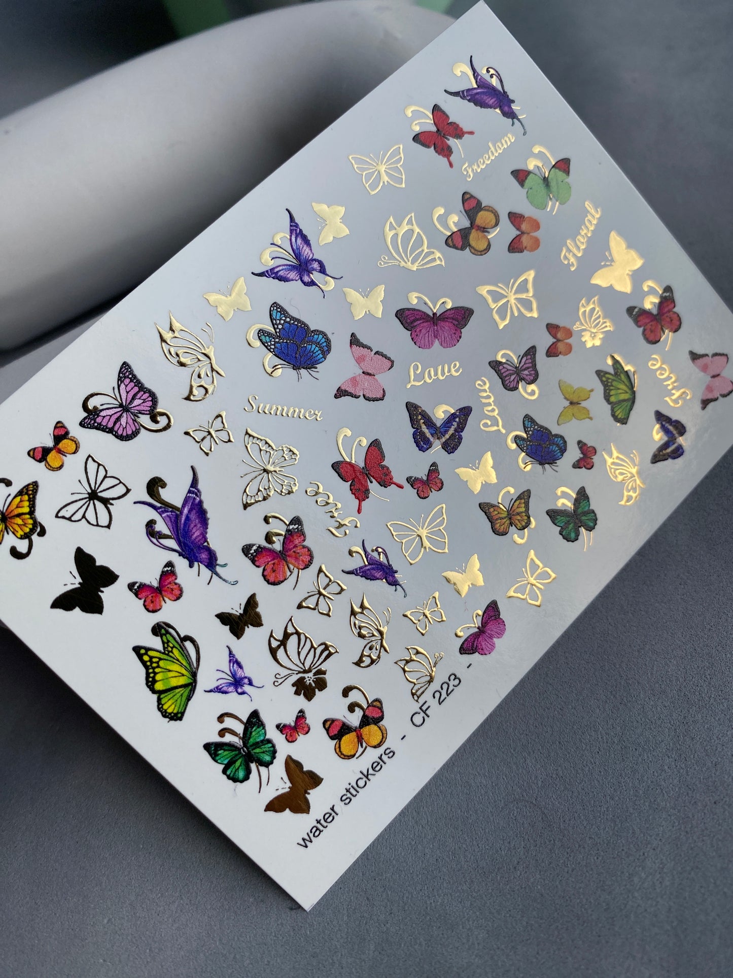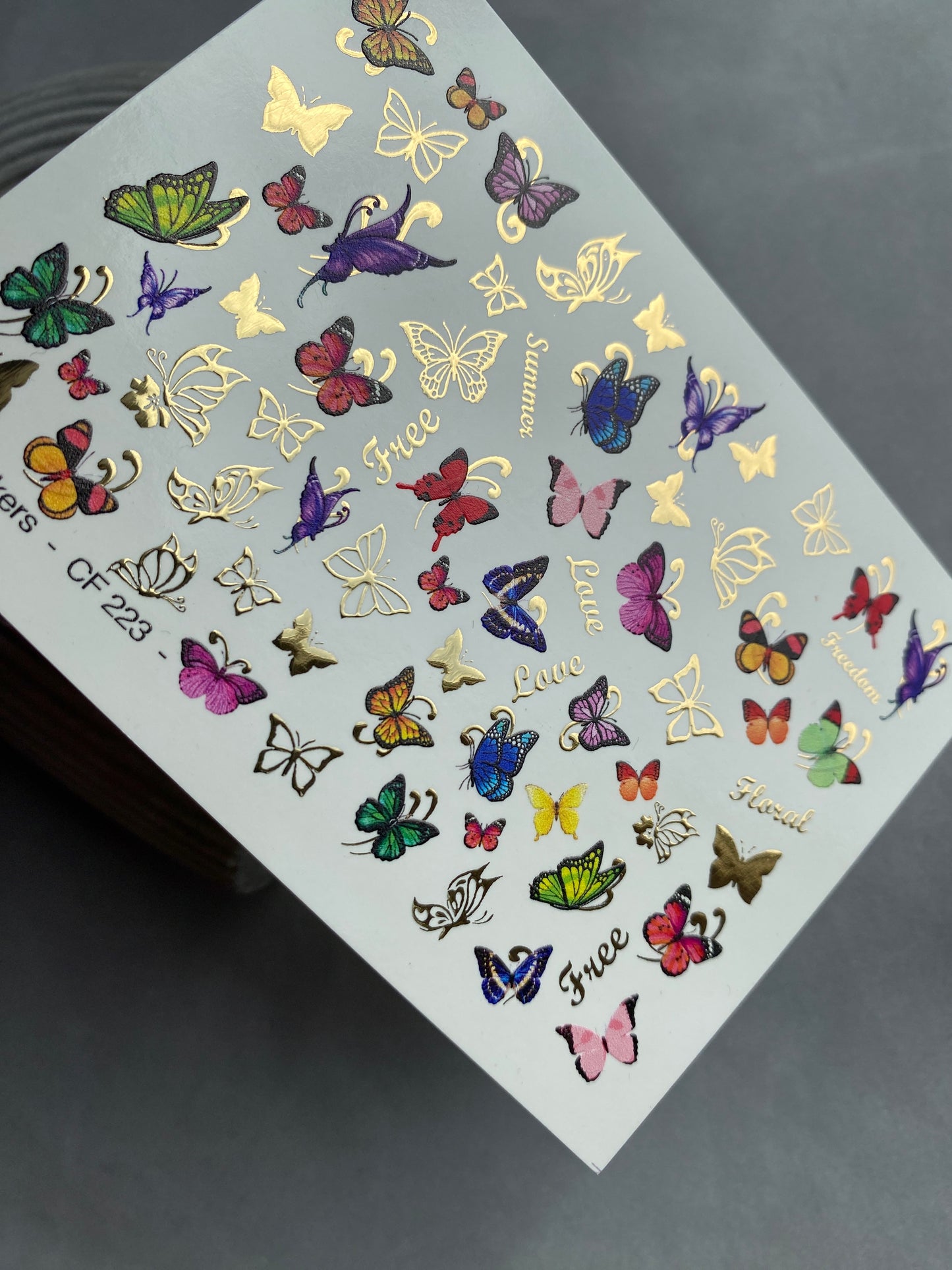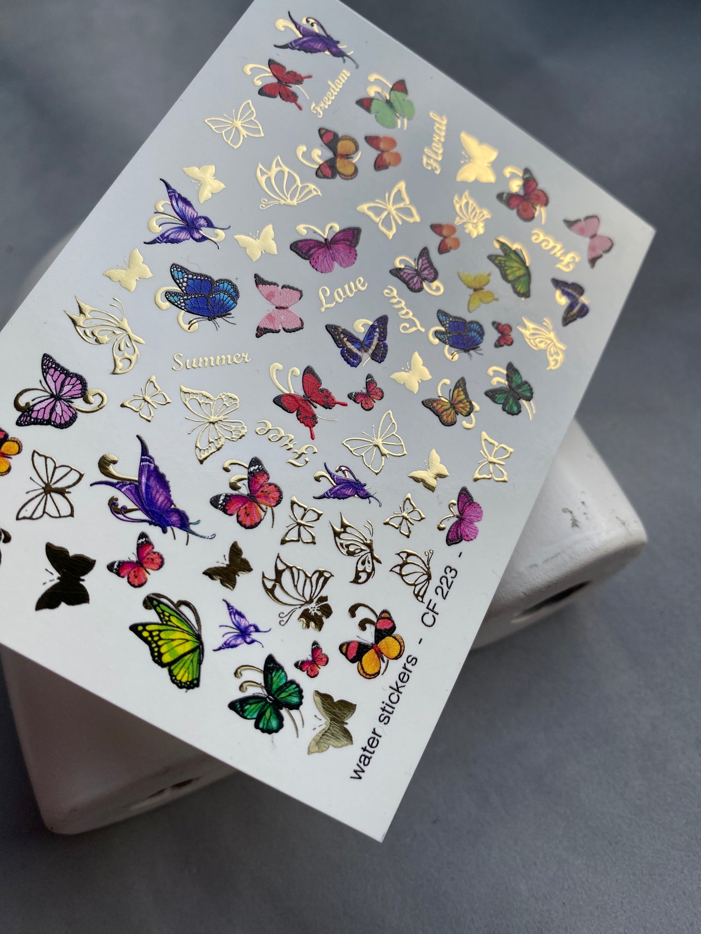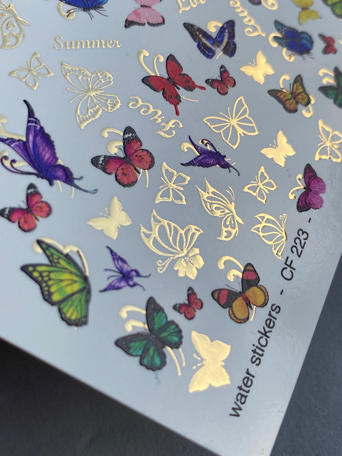 Nálepka na nehty CF-223 | Nálepky na nehty s motivem motýla | Barevná křídla a zlatá fólieCF_223