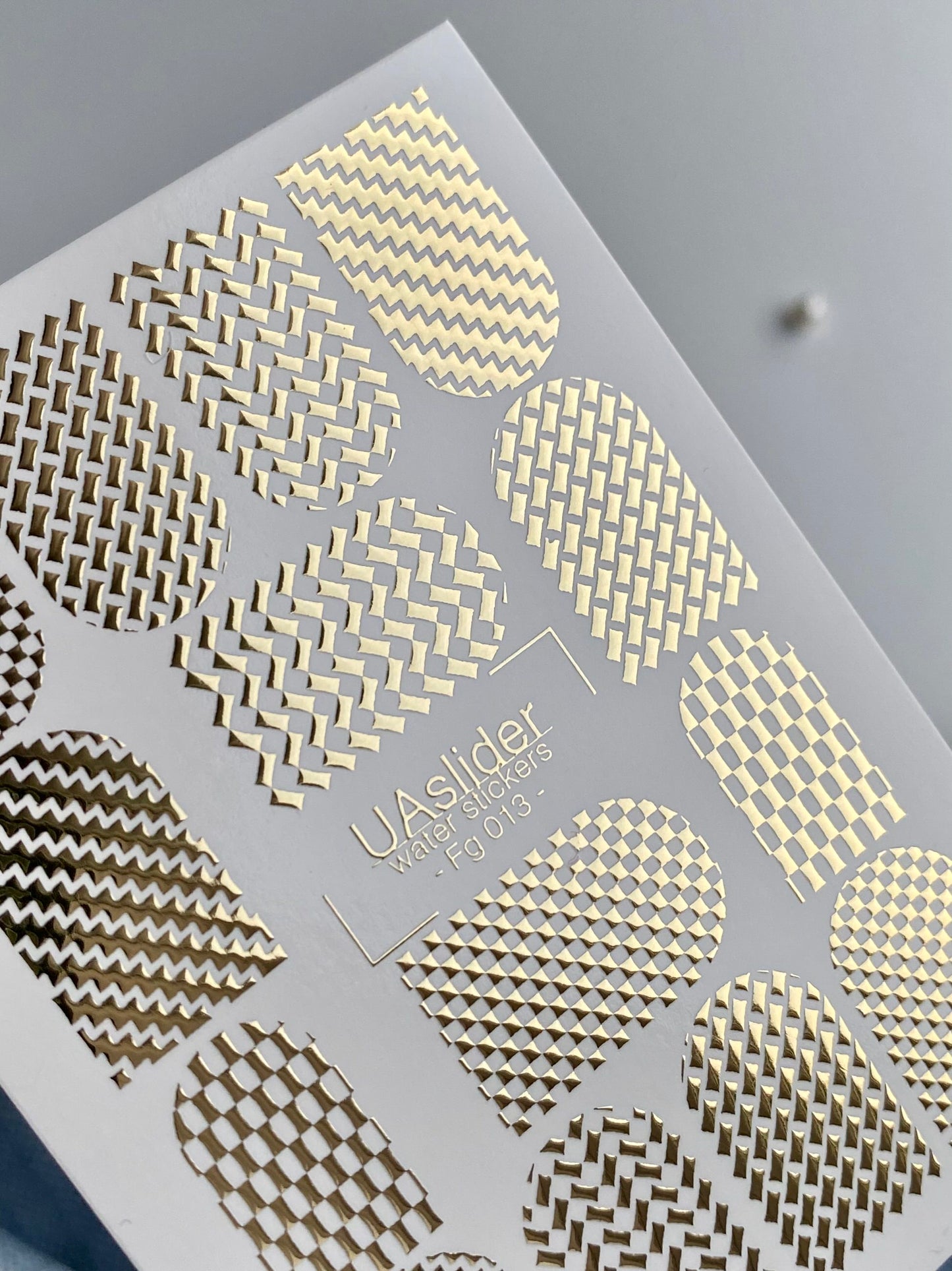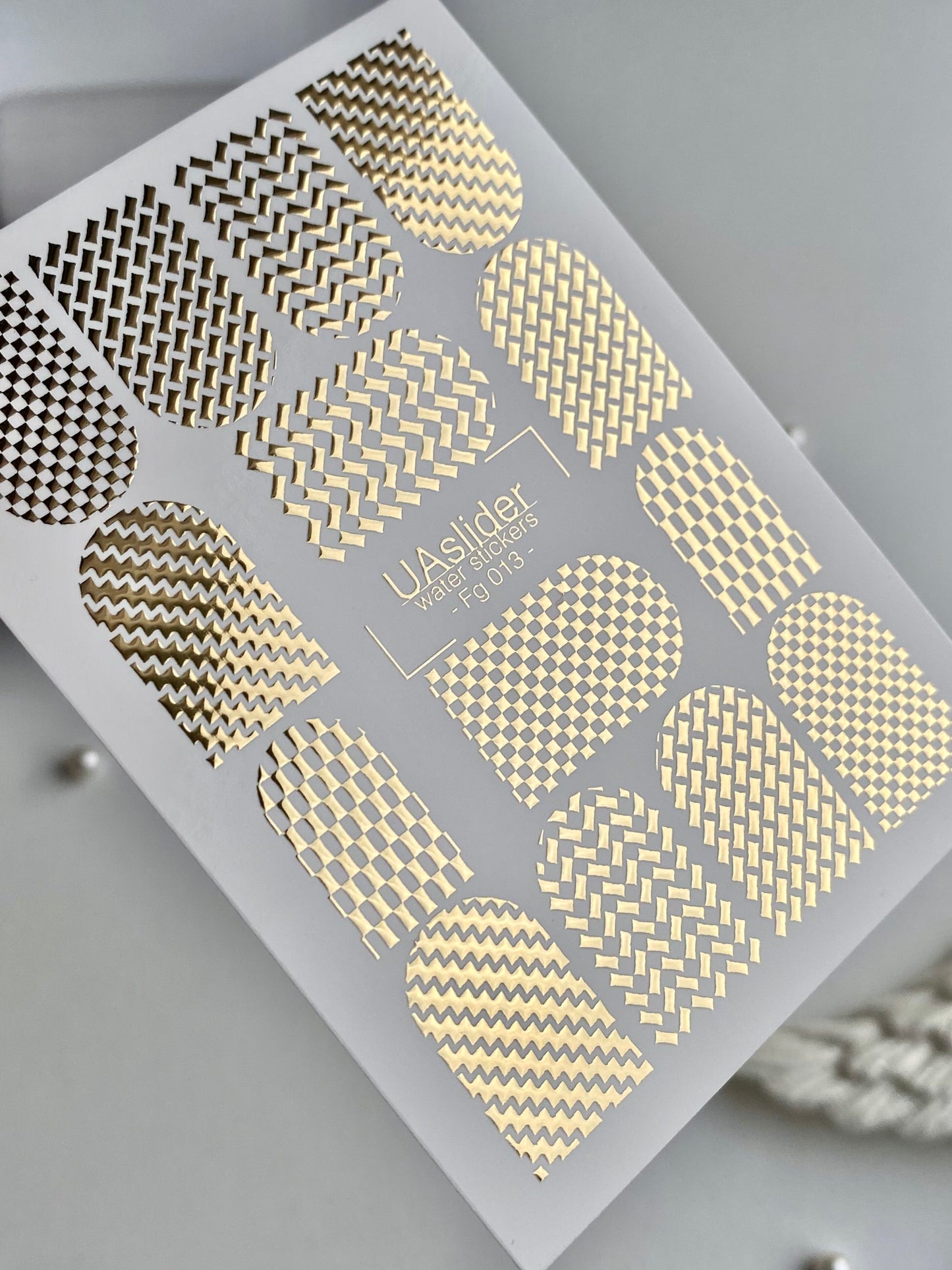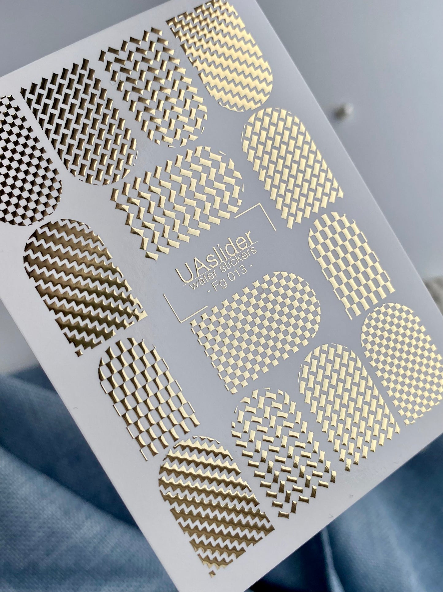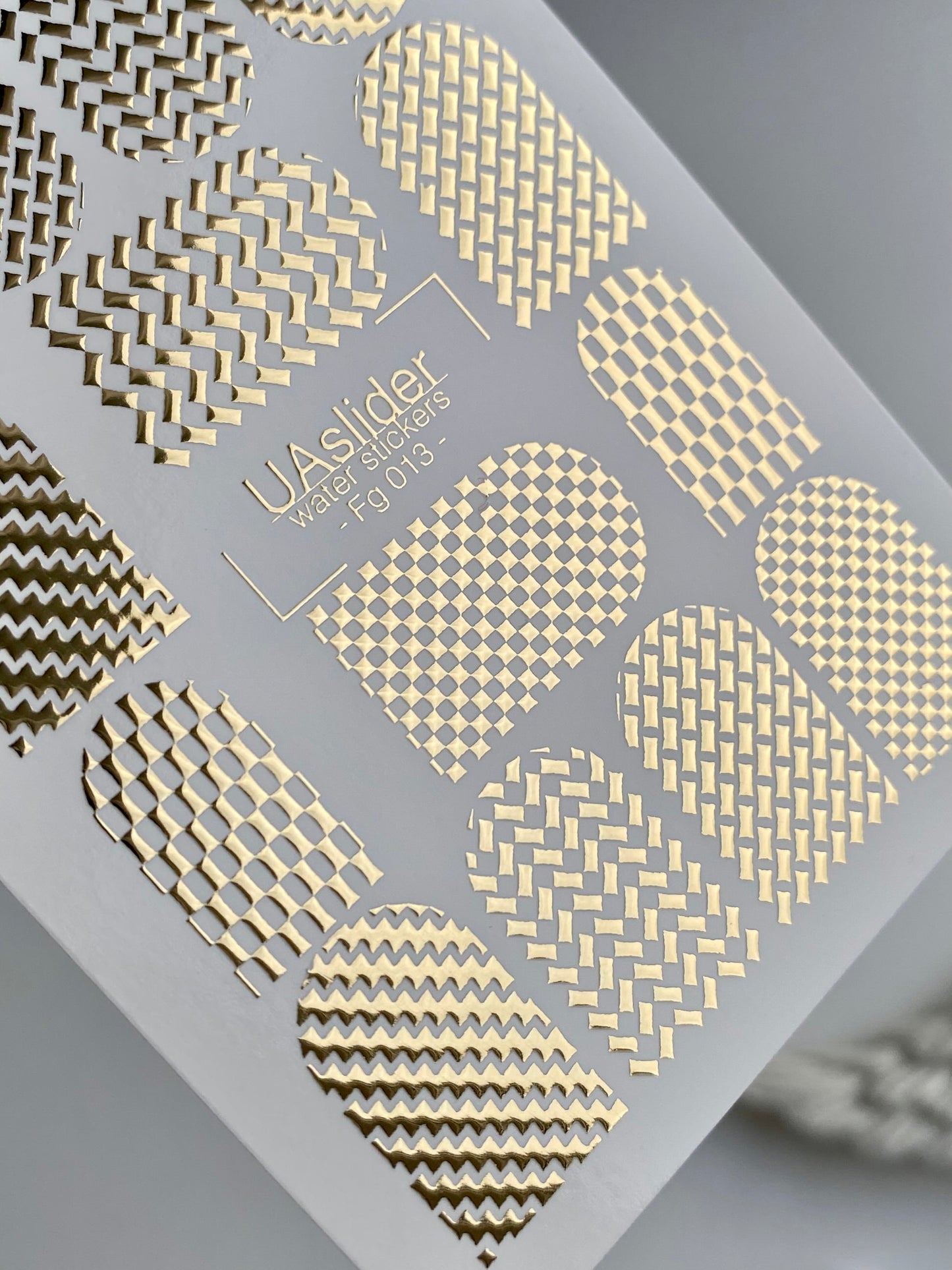 Nálepky na nehty Fg-013 | Geometrické vodní nálepky na nehty se zlatou fólií | Vzory na celé nehtyFg_013