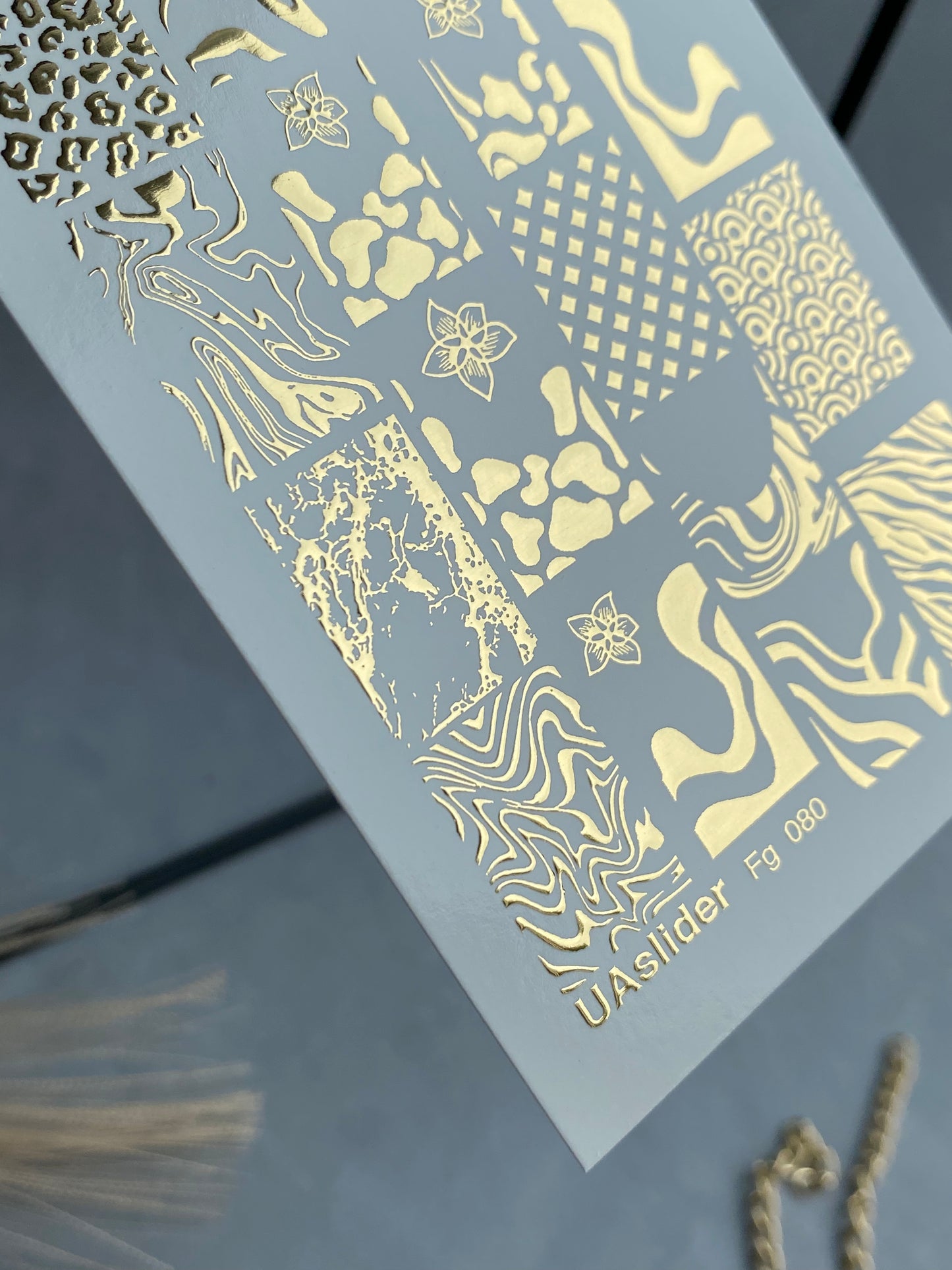 Vodní obtisky na nehty zlaté fólie s mixem zvířecích vzorů a abstraktních motivů — leopardí skvrny, mramorové textury, zebří pruhy, vlny a geometrické vzory. Tyto kovové designy přidávají výrazný, stylový akcent, díky kterému každá manikúra vypadá moderně a jedinečně.