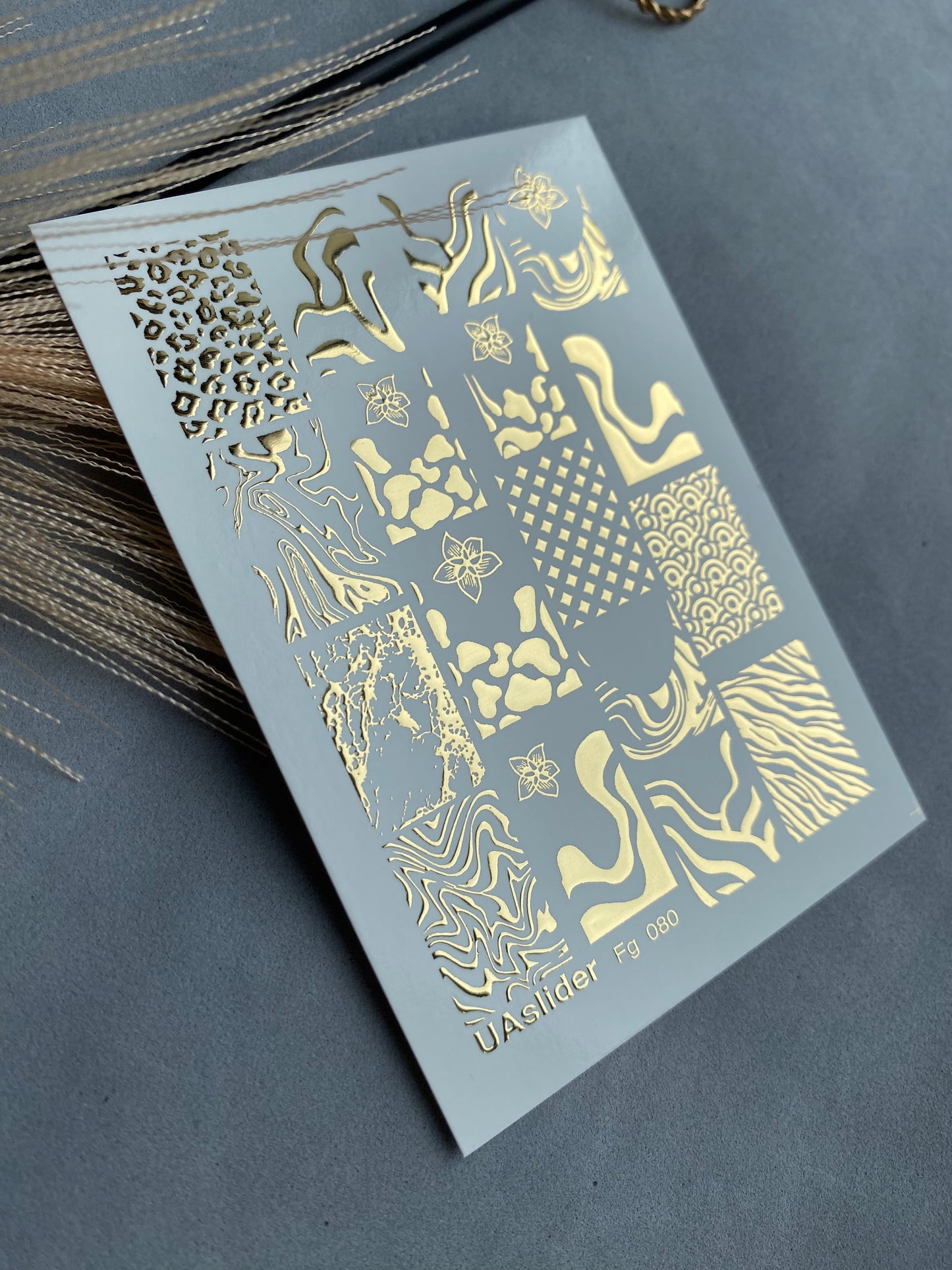 Nálepky na nehty vodní Fg-080 | Zlaté fóliové vodní nálepky na nehty | Zvířecí vzory a abstraktní motivyFg_080