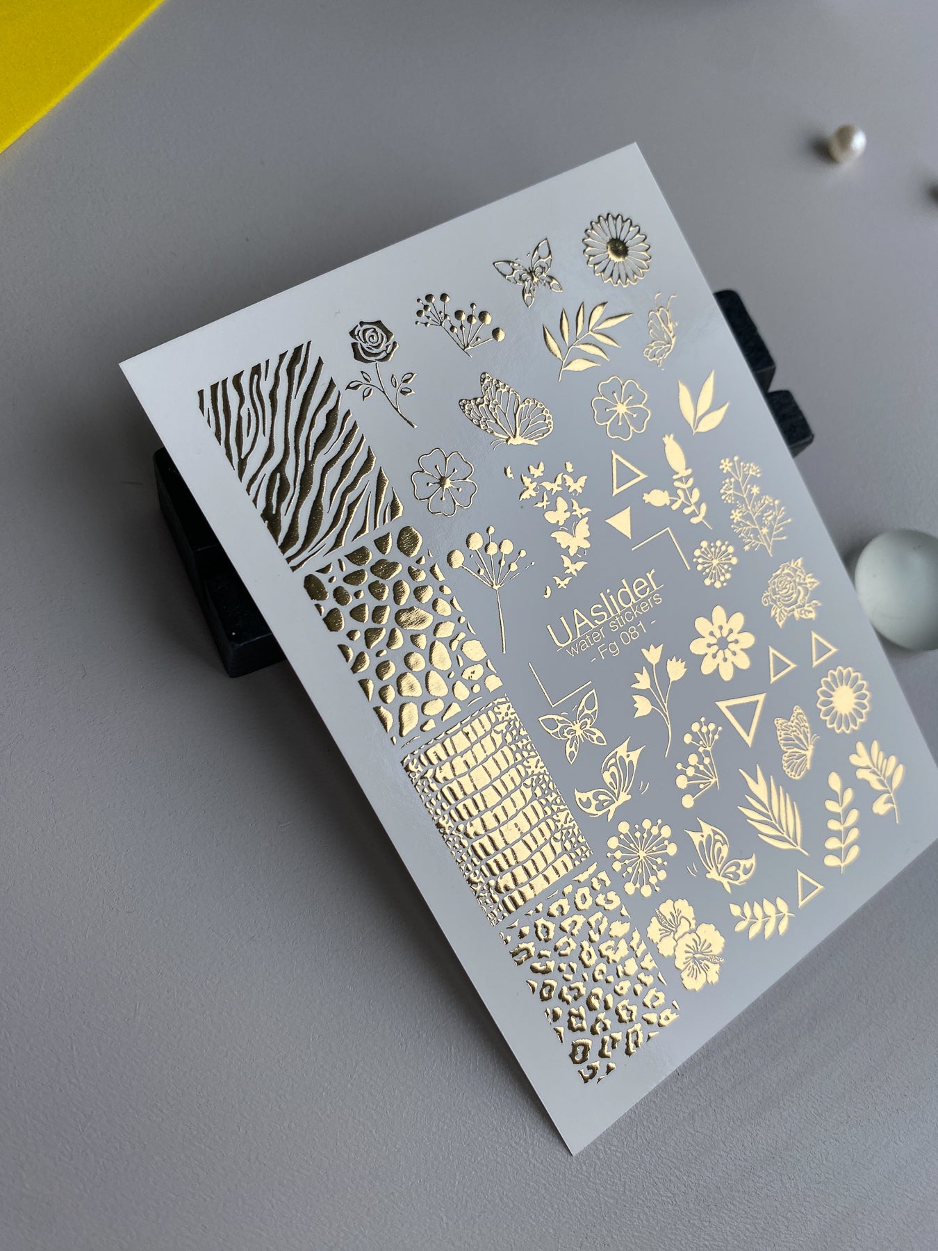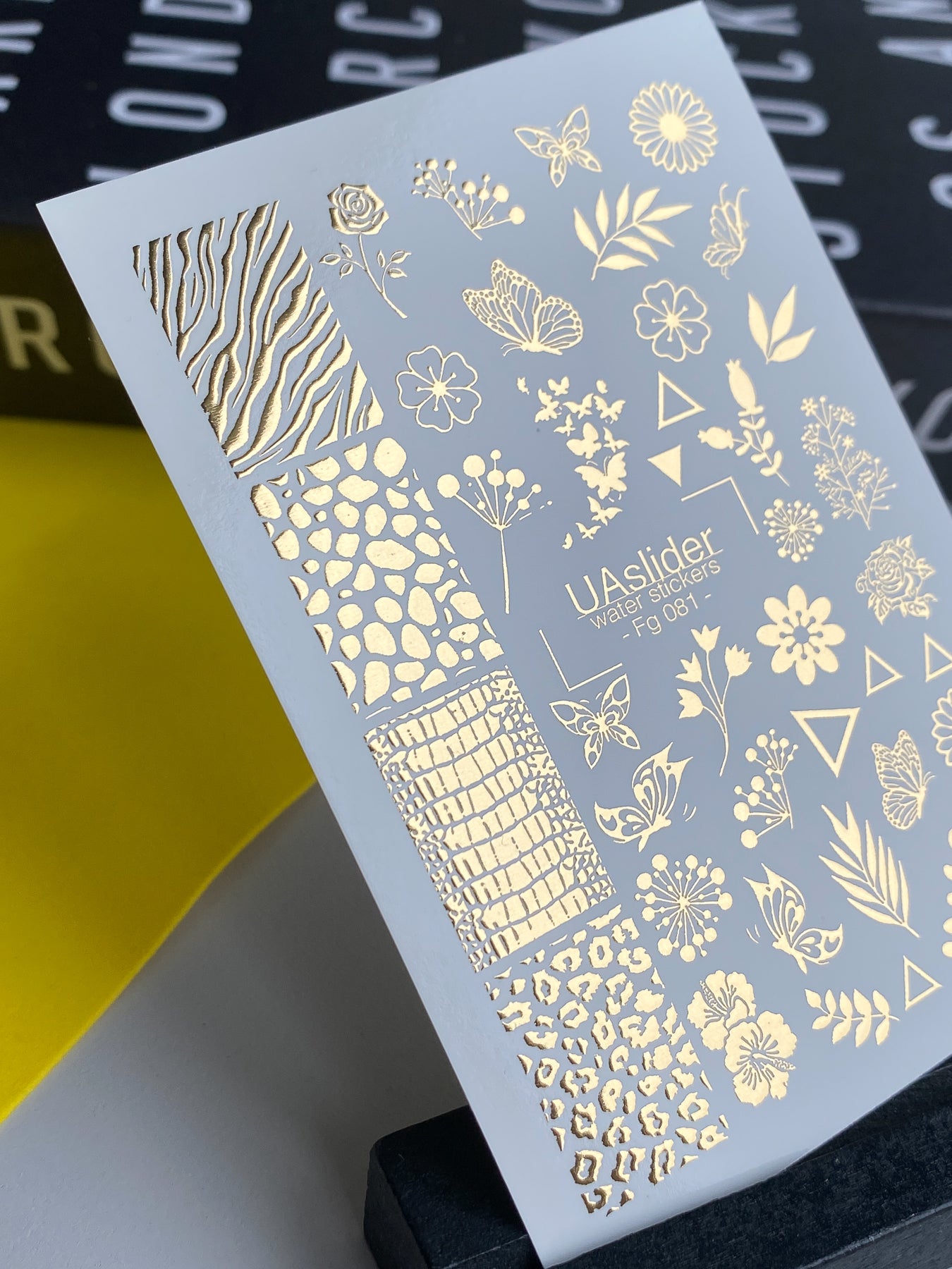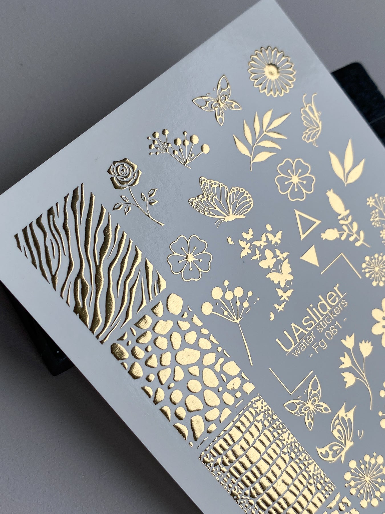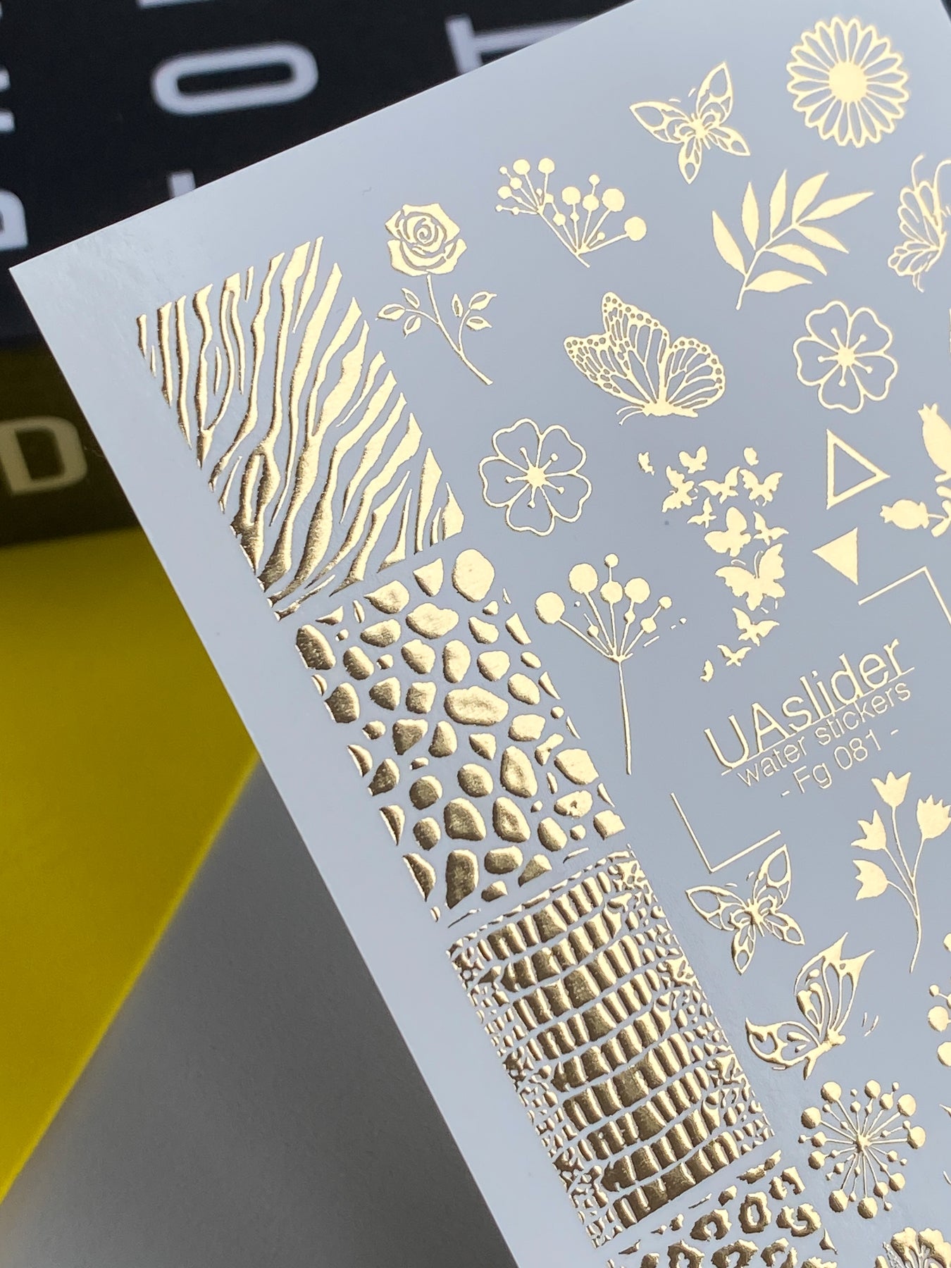 Nálepky na nehty Fg-081 | Zlaté fóliové vodní nálepky na nehty | Květinový a zvířecí vzor mixFg_081