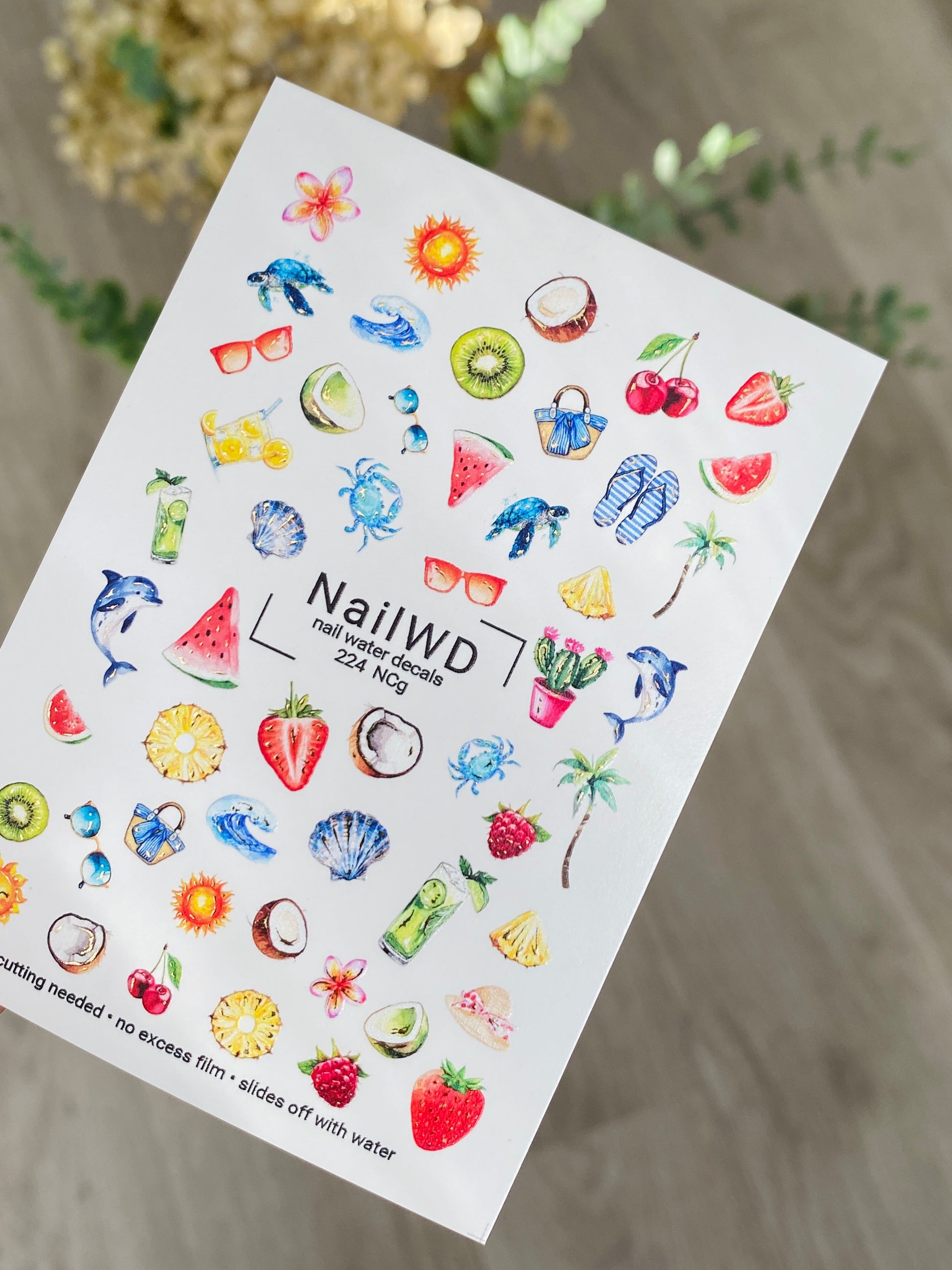Nagel Wasserabziehbild 224 Nagel WD | Wasserfolien Nagelabziehbilder mit Sommerfrüchten und Meeresmotiven | Tropischer Urlaub Nagelkunst