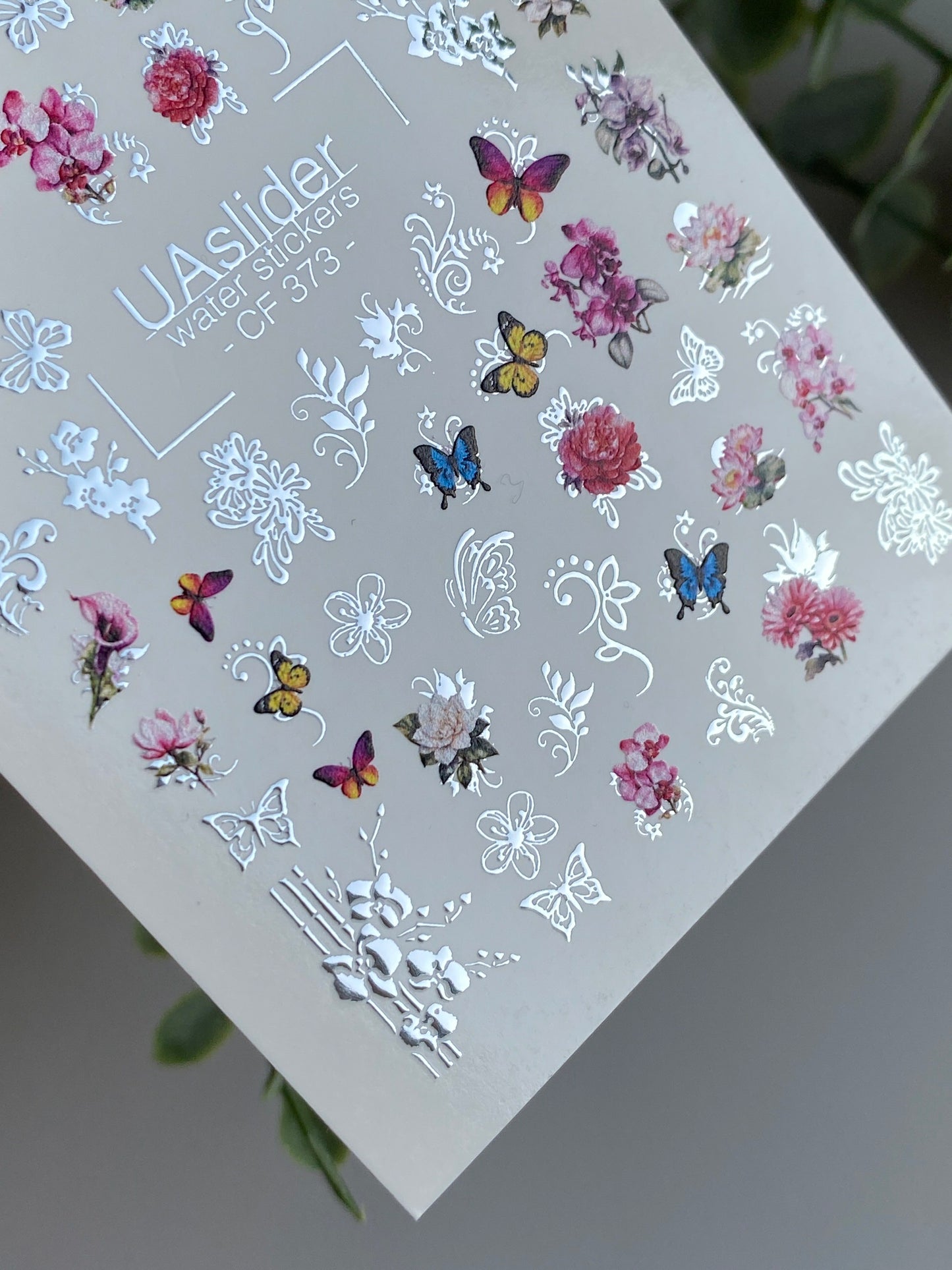 Nagel Wasserabziehbild CF-373 | Florale Wasserfolien Nagelabziehbilder | Schmetterlinge und Ornamentale DesignsCF_373