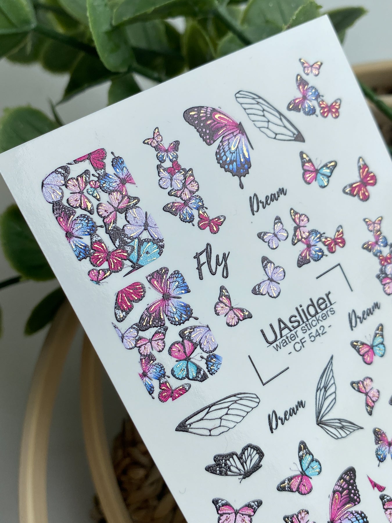 Nagel Wasserabziehbild CF-542 | Wasserabzieh-Nagelaufkleber mit bunten Schmetterlingen & Flügeln | Traumhafte Schmetterlings-NagelkunstCF_542