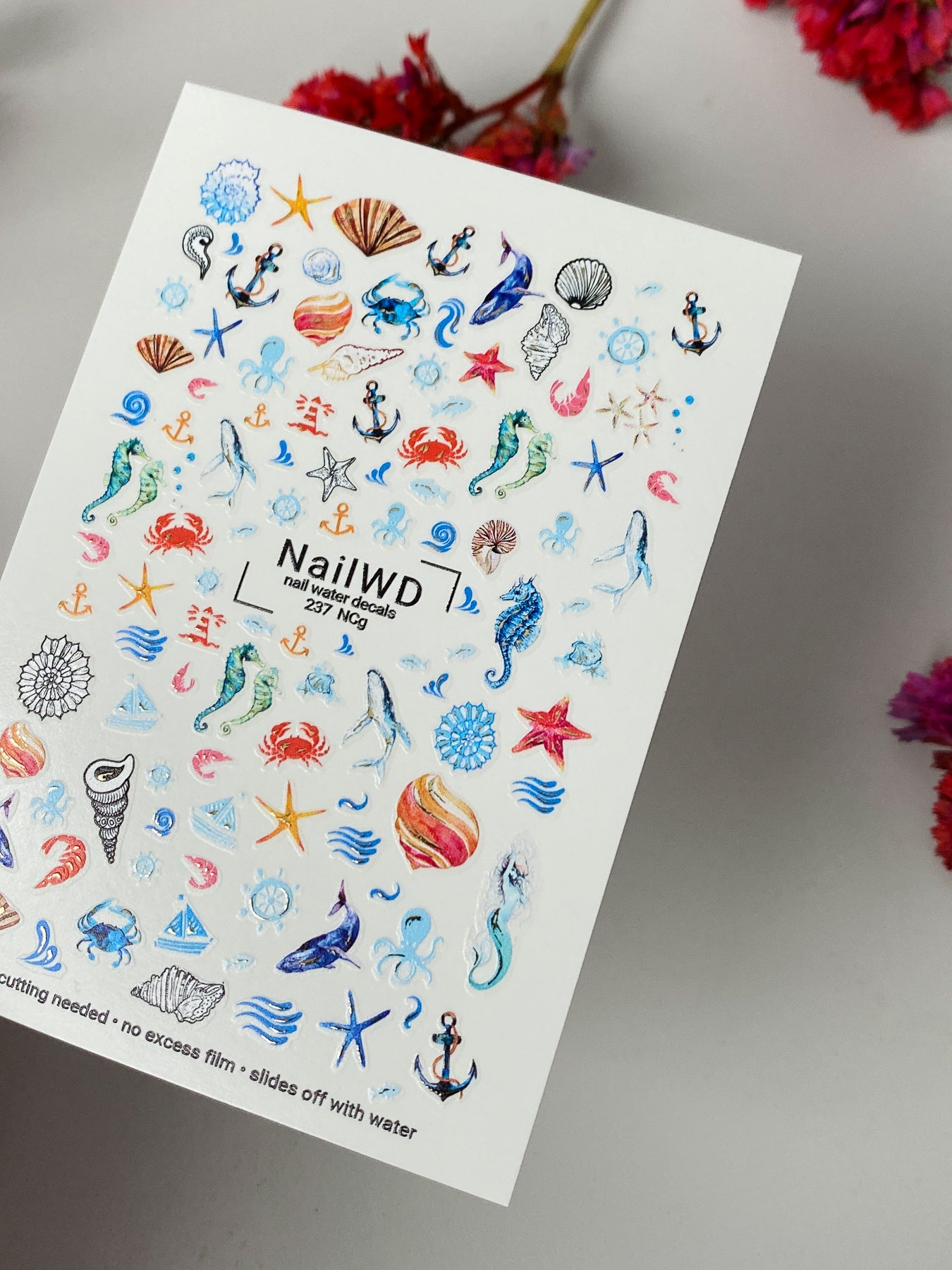 Nagel Wasserabziehbild 237 Nagel WD | Wasserfolien Nagelabziehbilder Ozean Thema | Nagel Wasserabziehbilder mit Meerestieren und MuschelnNCg_237