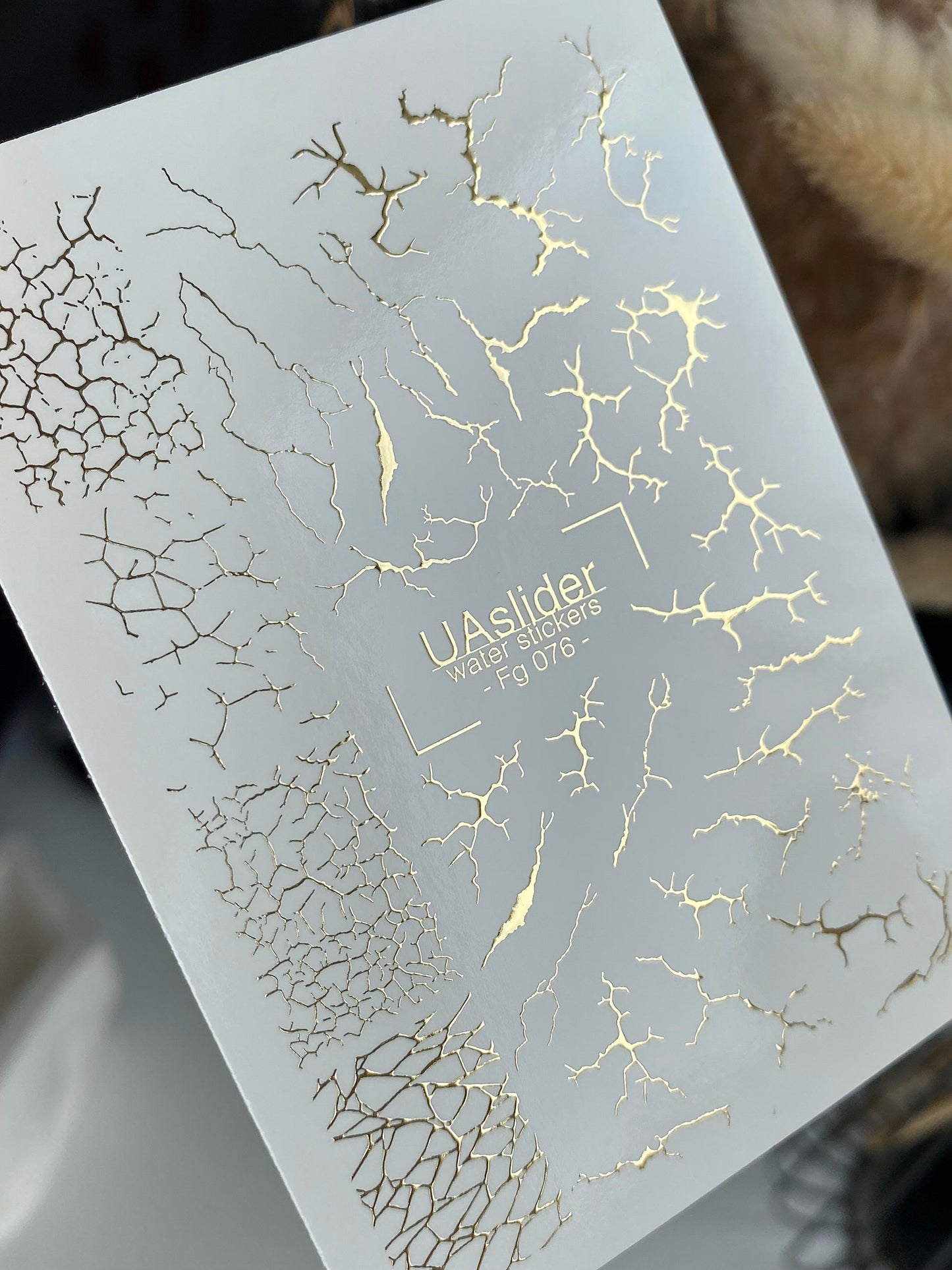Calcomanía de agua para uñas Fg-076 | Calcomanías de agua para uñas con lámina dorada | Efecto craquelado y relámpagoFg_076