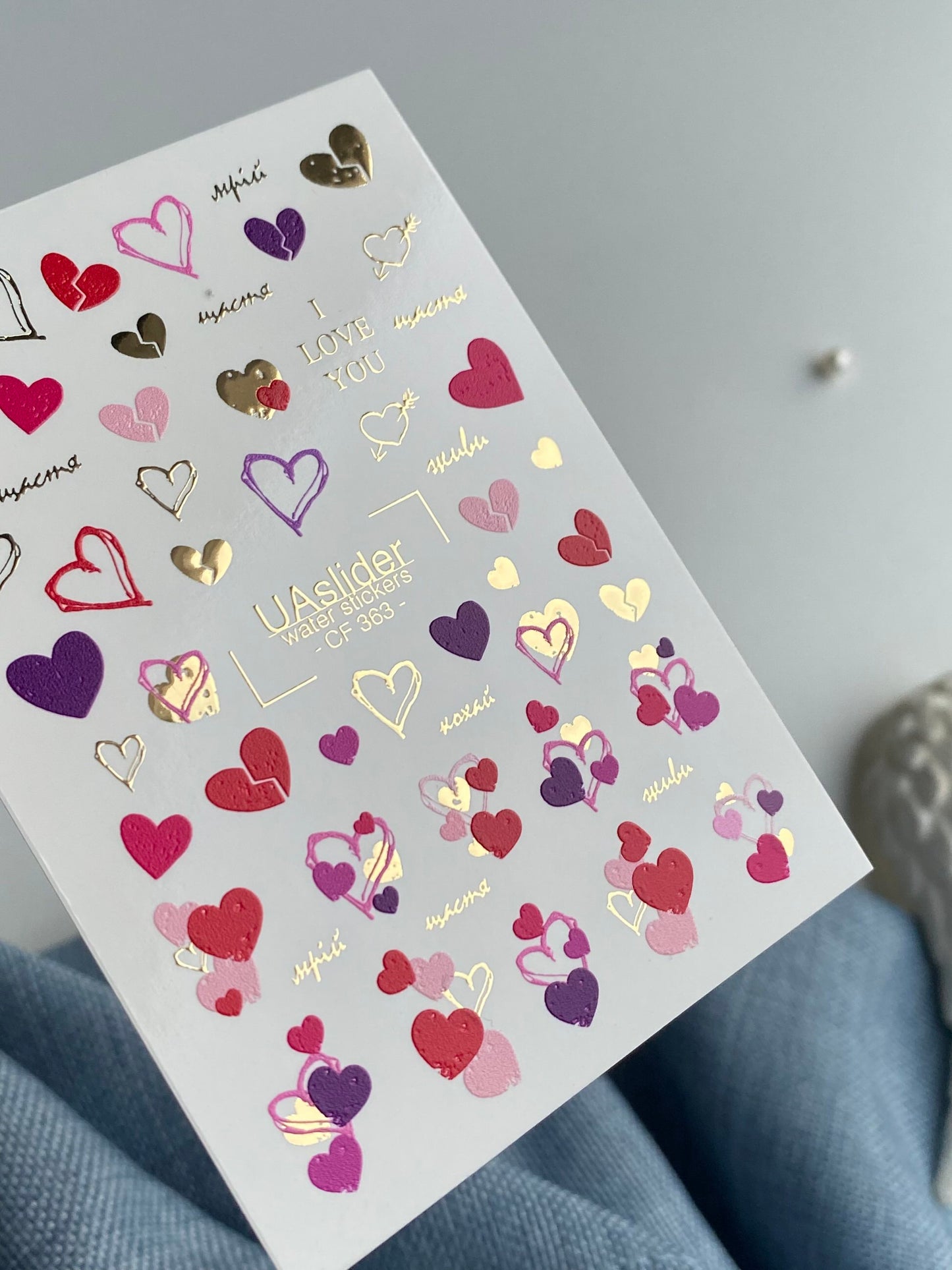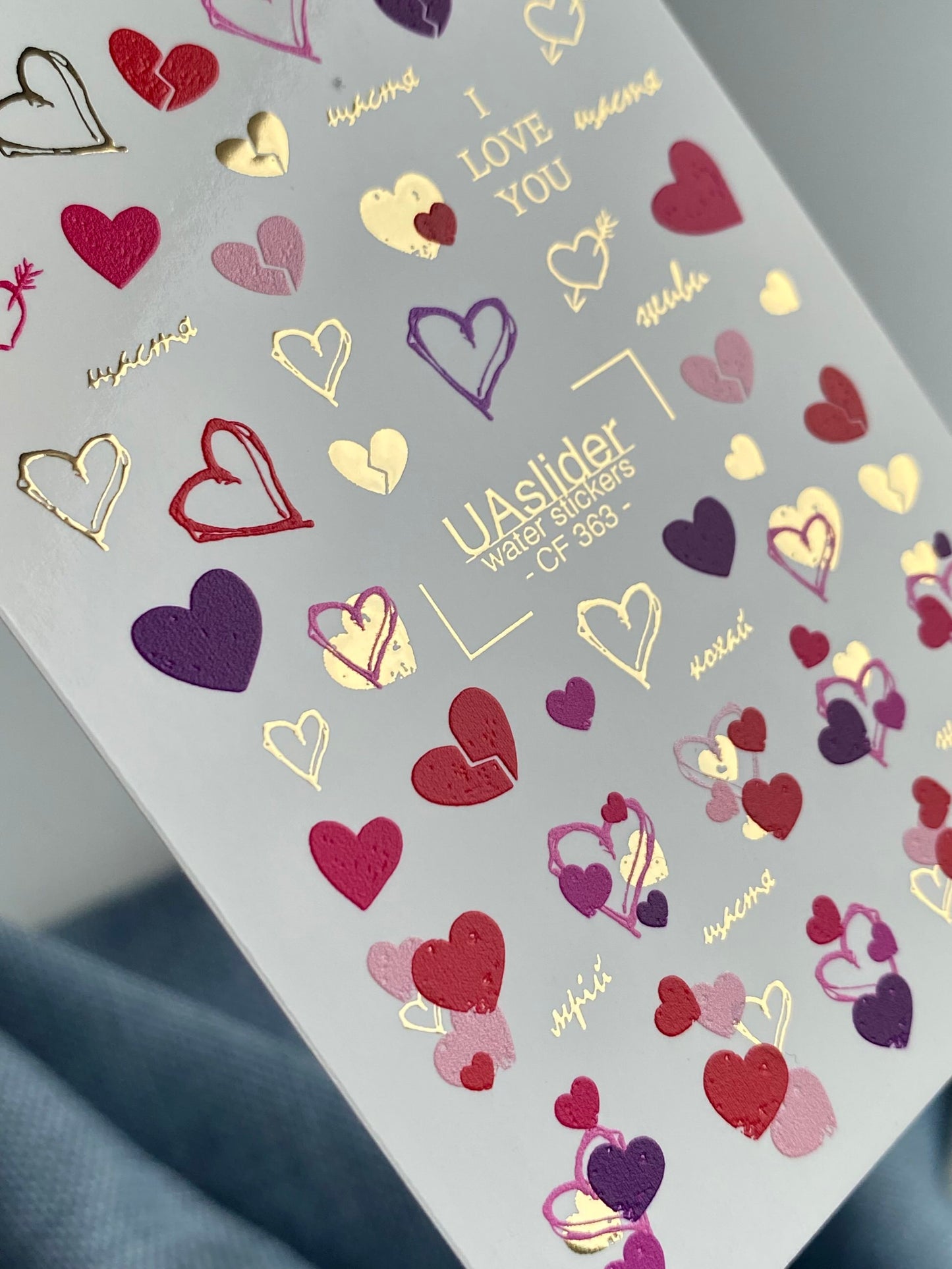 Adesivo para Unhas CF-363 | Adesivos para Unhas com Transferência de Água | Corações Românticos e Frases de AmorCF_363