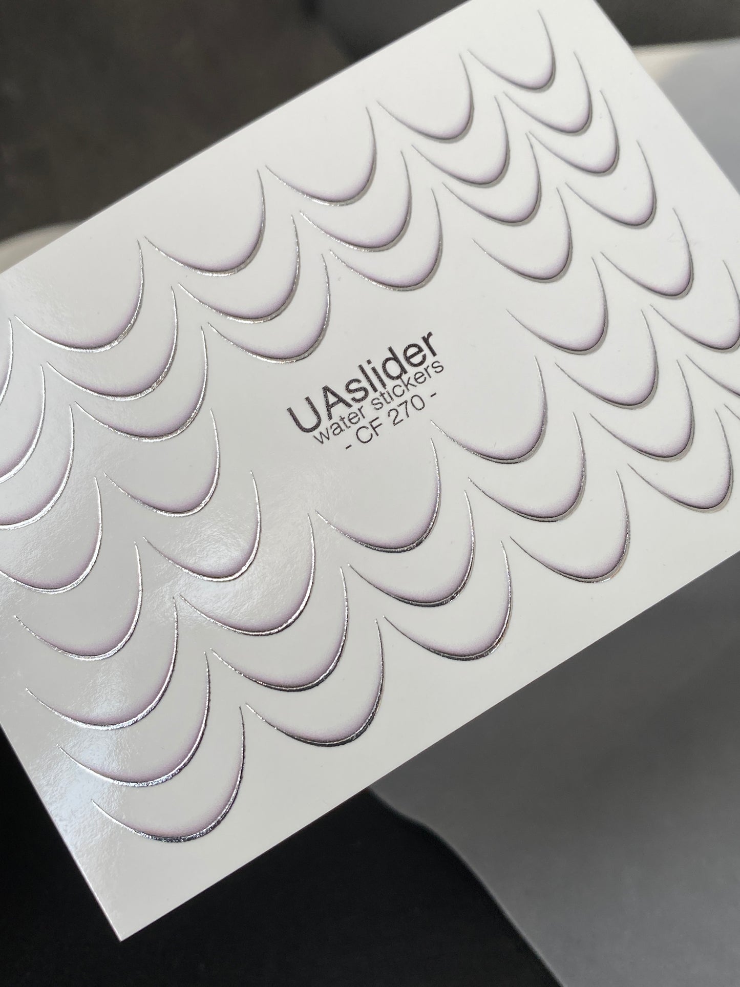 Decalcomanii de apă pentru unghii CF-270 | Decalcomanii de apă pentru unghii franțuzești | Linii curbate argintii pentru vârfuri franțuzeștiCF_270