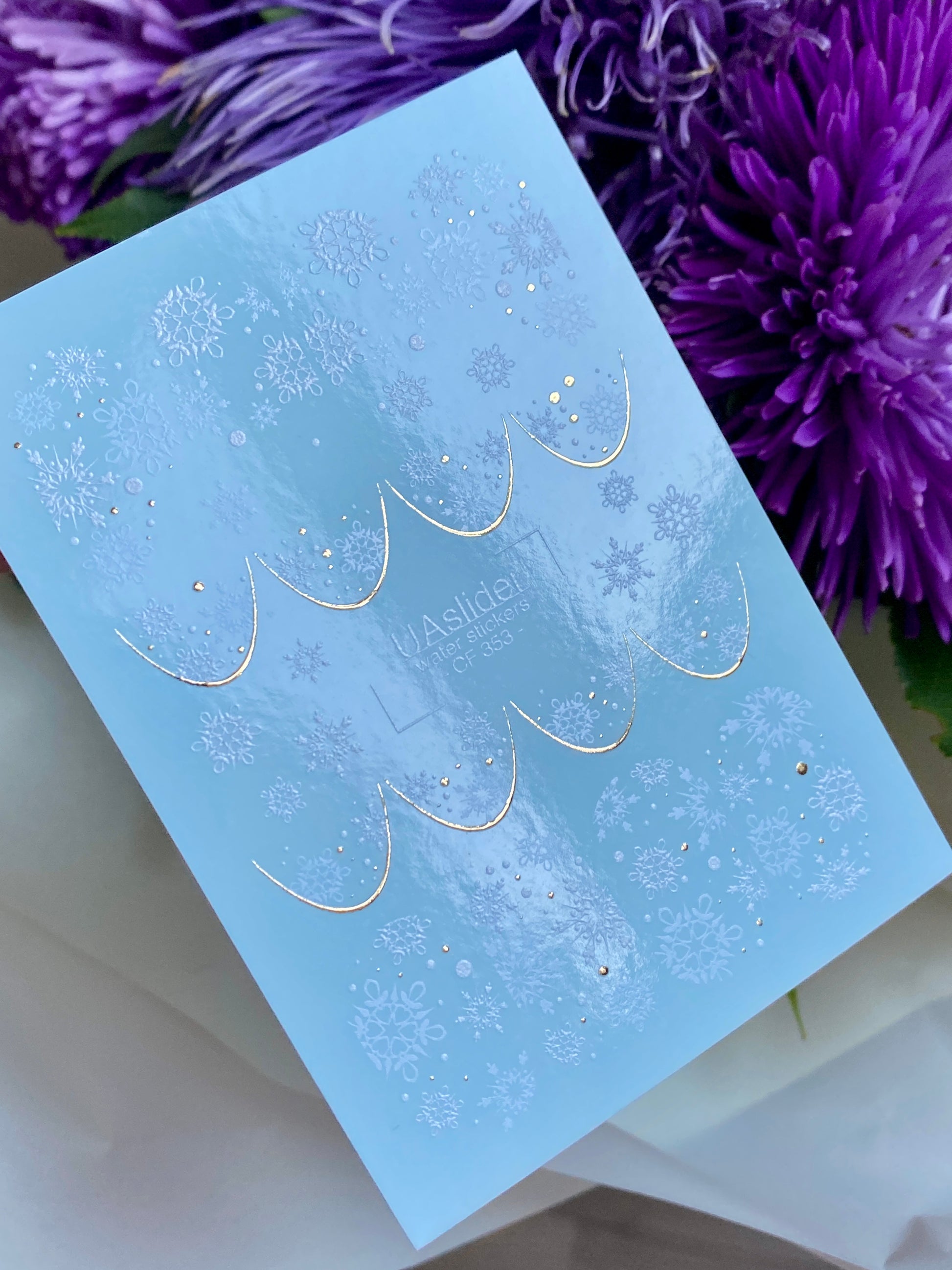 Tırnak Su Çıkartması CF-353 | Su Kaydırmalı Tırnak Çıkartmaları | Altın Aksanlı Kar Taneleri Fransız Uçları