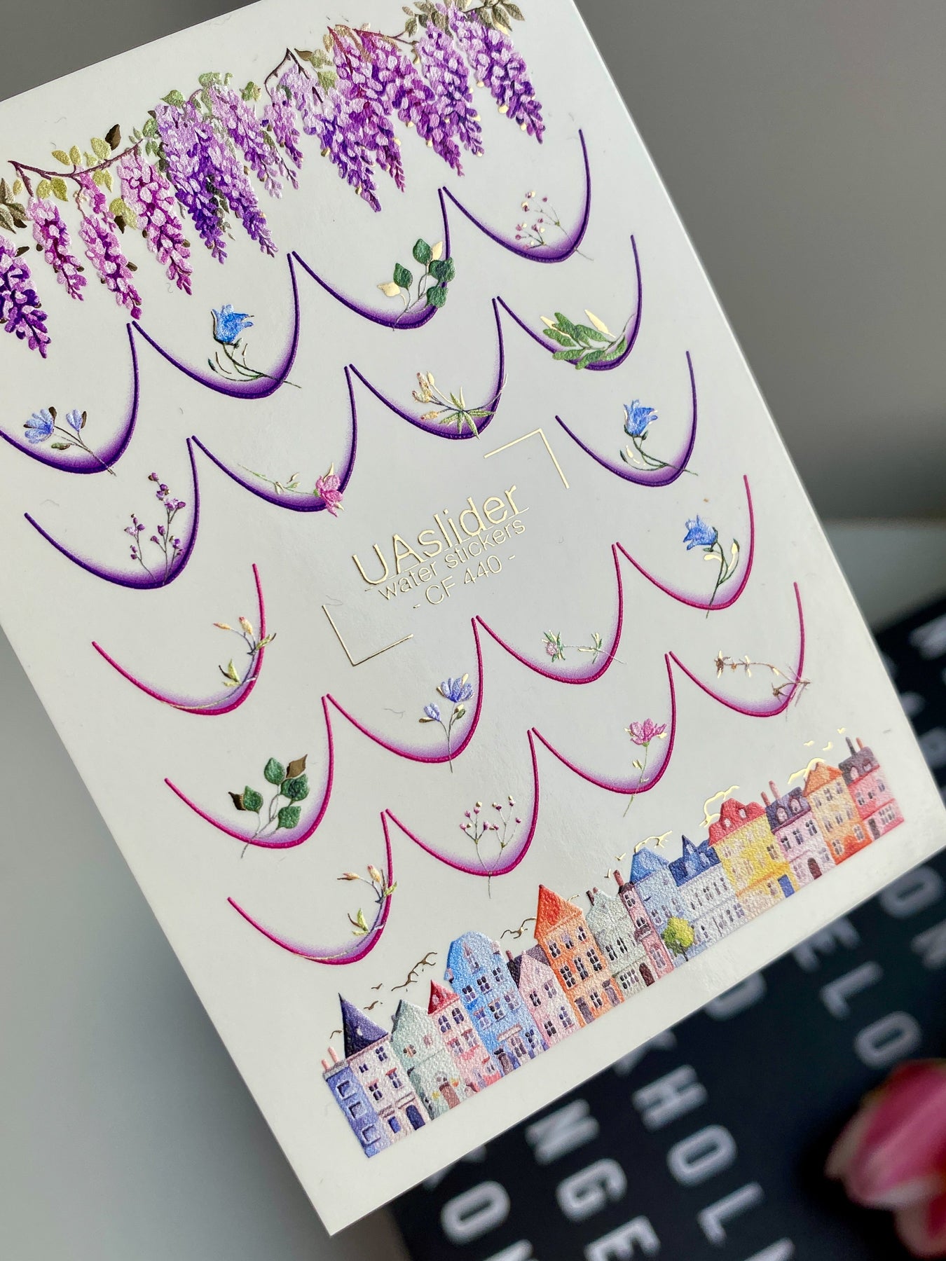 Tırnak Su Çıkartması CF-440 | Fransız Su Kaydırmalı Tırnak Çıkartmaları | Çiçekli Fransız Uçları ve Şehir Evleri