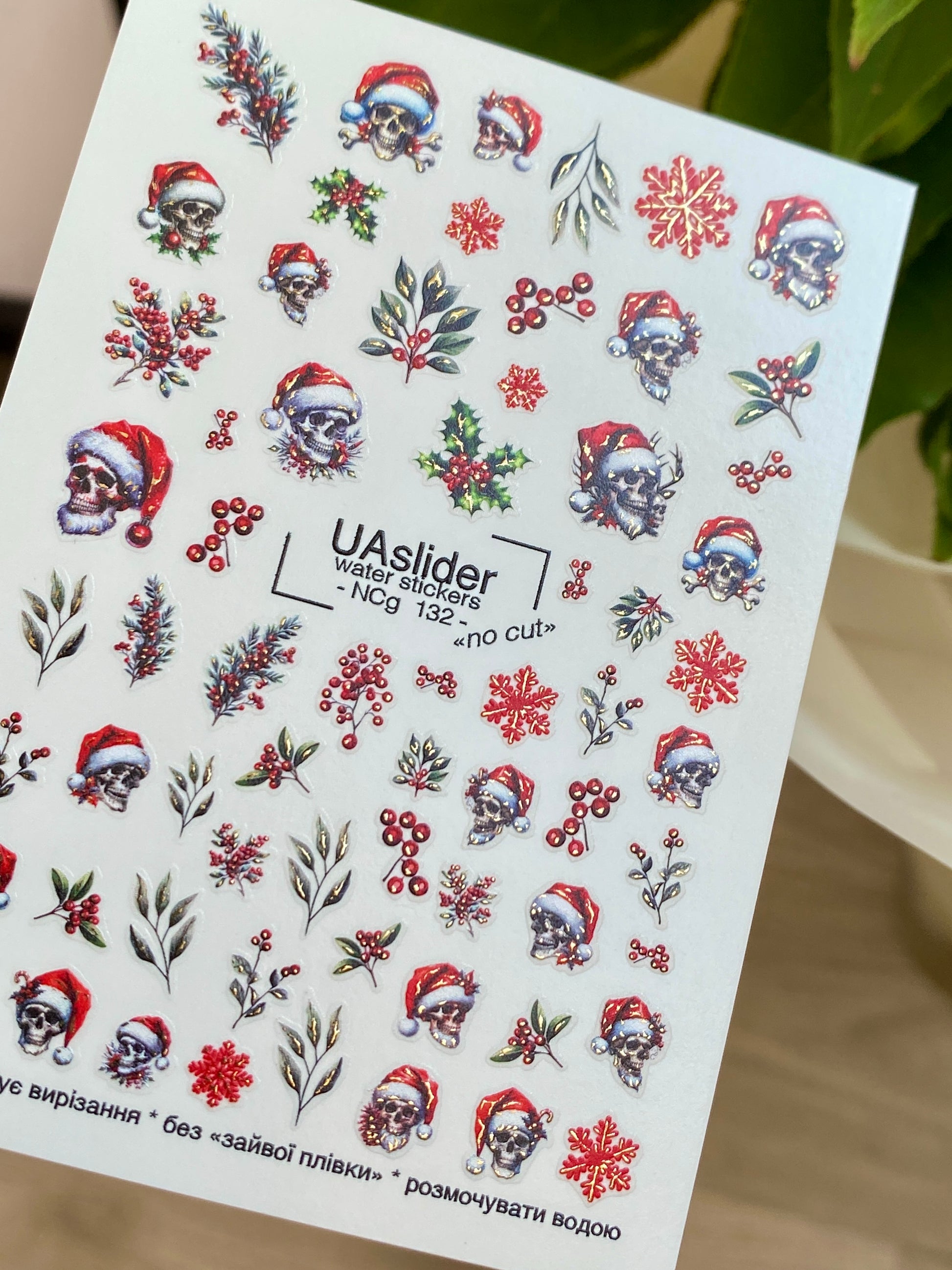 Tırnak Su Transferi NCg-132 | Kafataslı Noel Şapkası Su Kaydırmalı Tırnak Transferleri | Gotik Noel Tırnak SanatıNCg_132